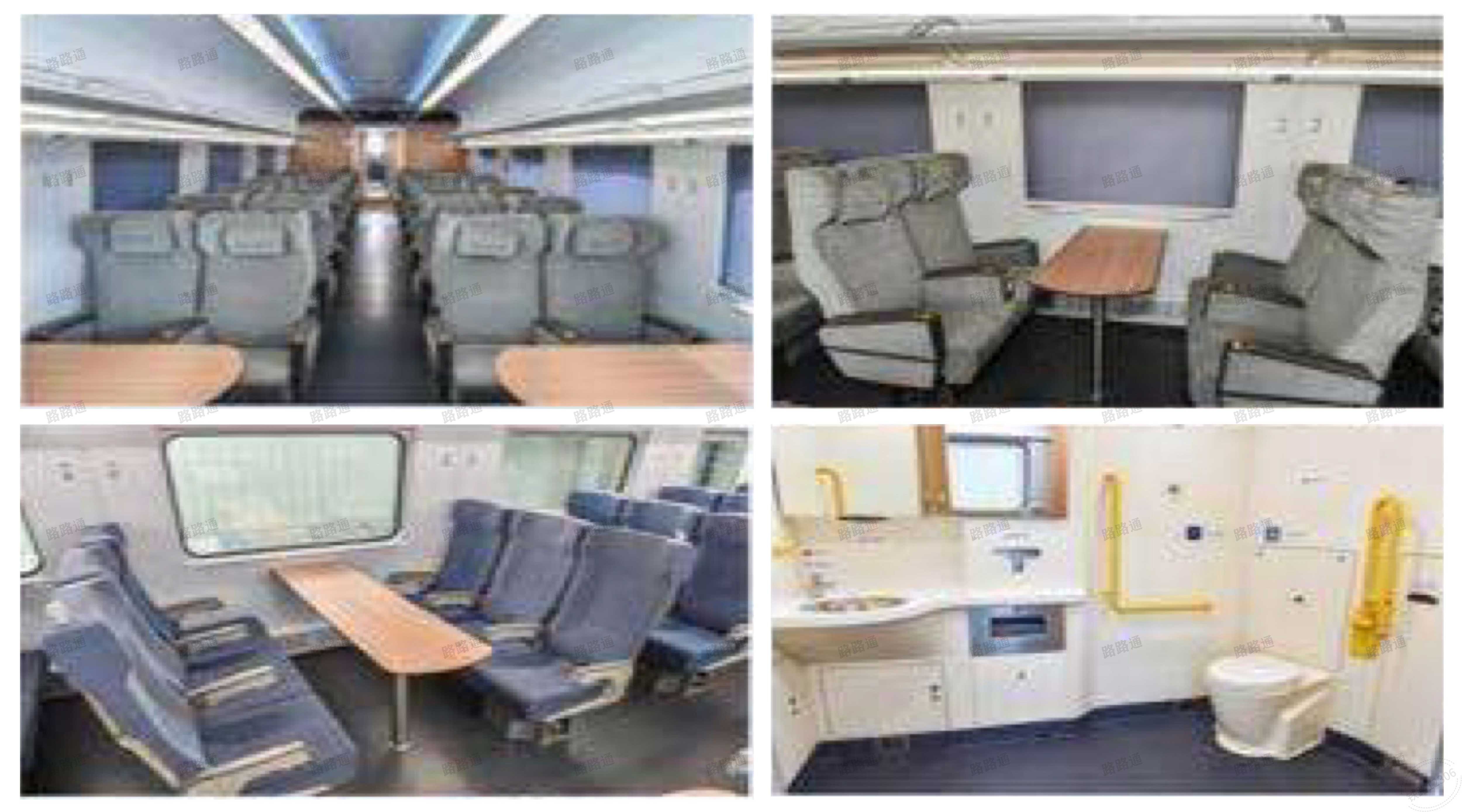 二等座: 客室采用固定座椅,座椅宽度大幅提升,提升动车组舒适度。二等座车设置了客室区域、配餐区域和无障碍区域大件行李区。![]() |