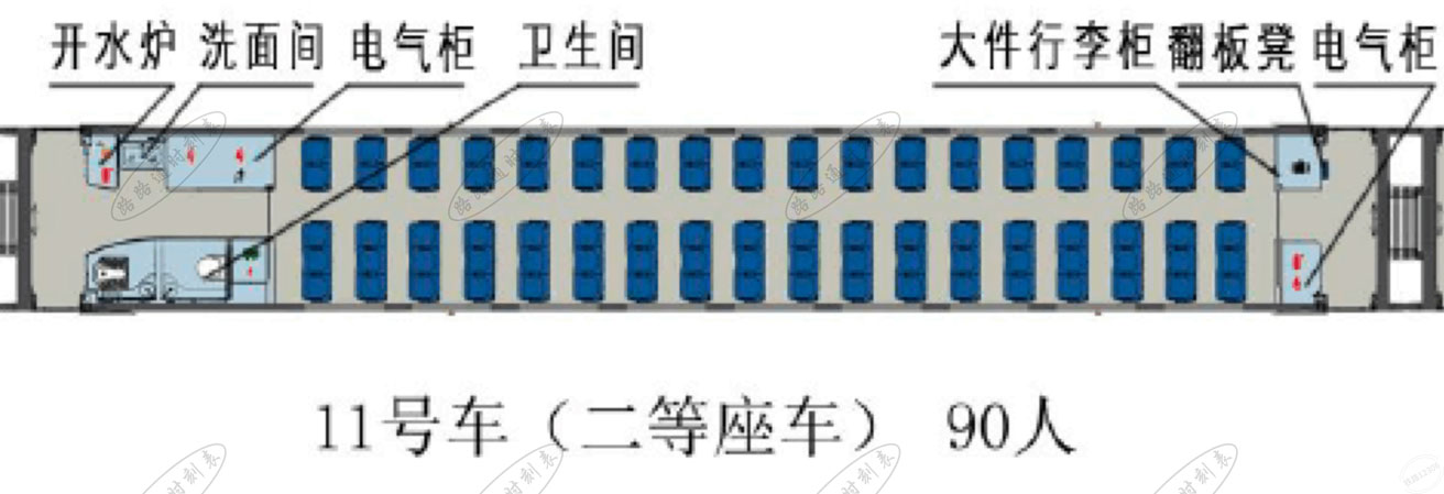 | 11号车(二等座车) 定员90人 拖车 |