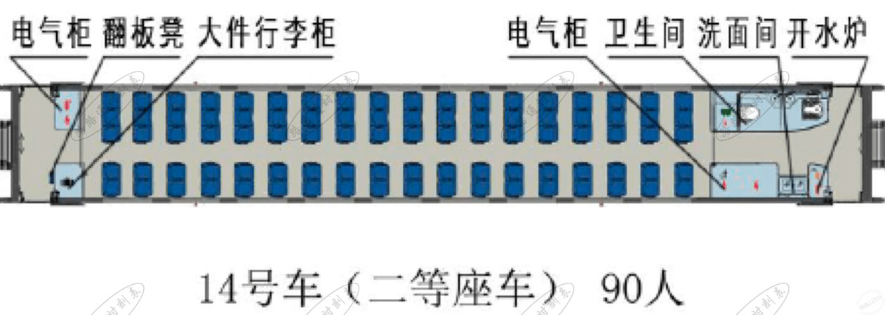 | 14号车(二等座车) 定员90人 拖车 |