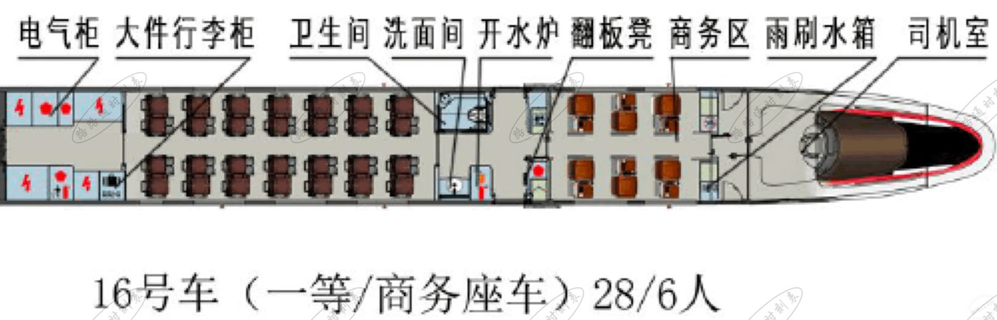 | 16号车(商务/一等座车) 定员6/28人 拖车> |