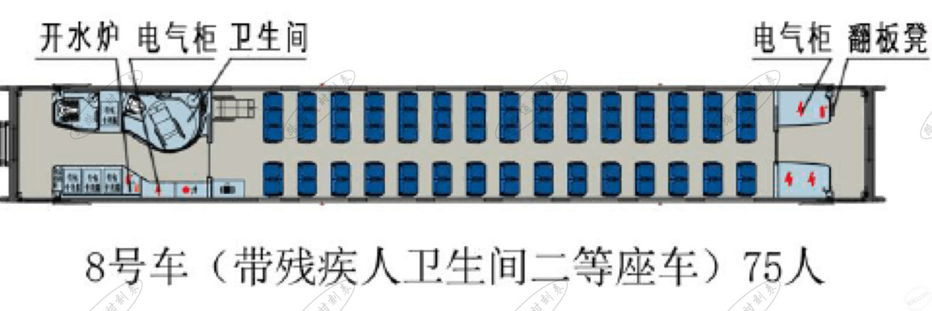 | 8号车(二等座车) 定员75人 拖车 |